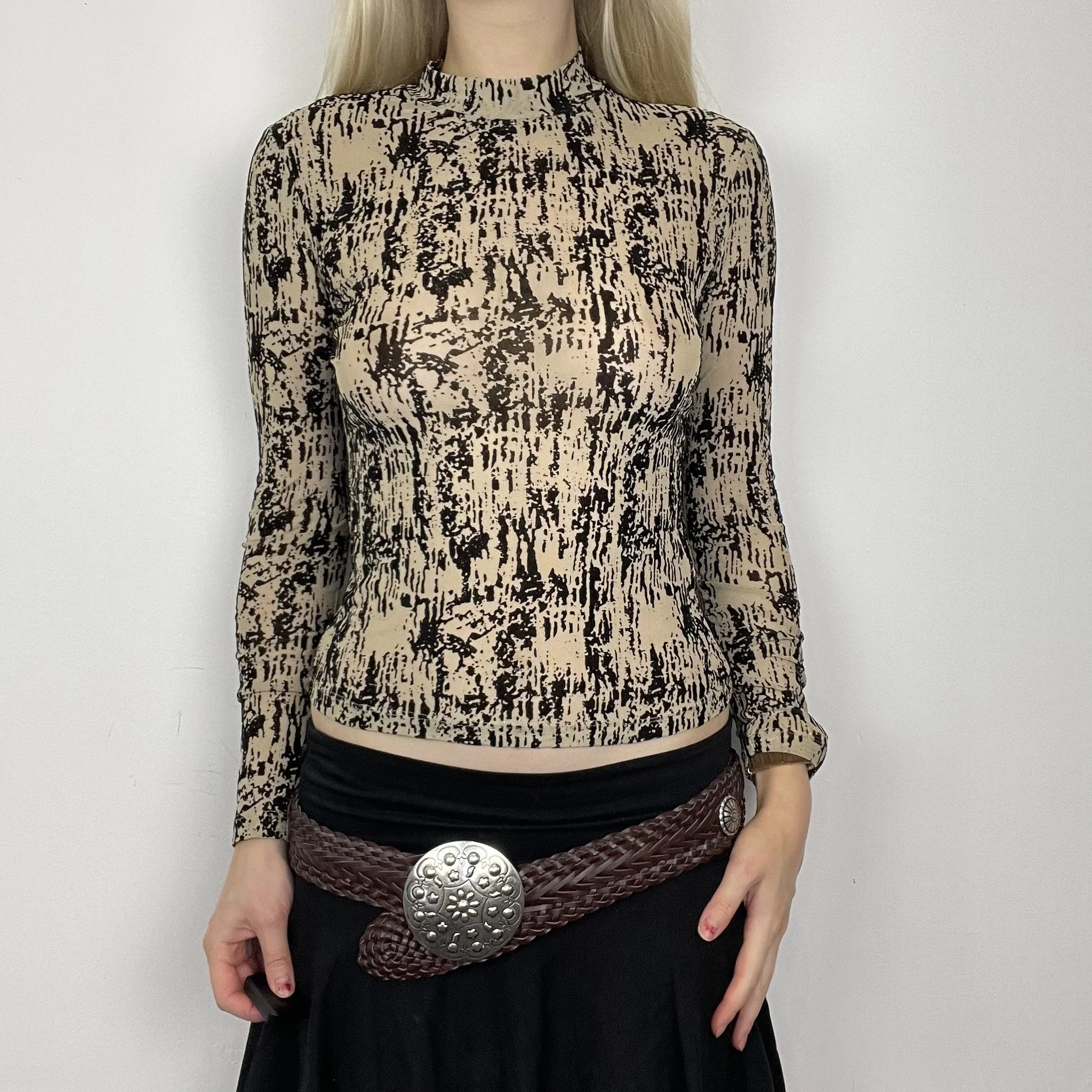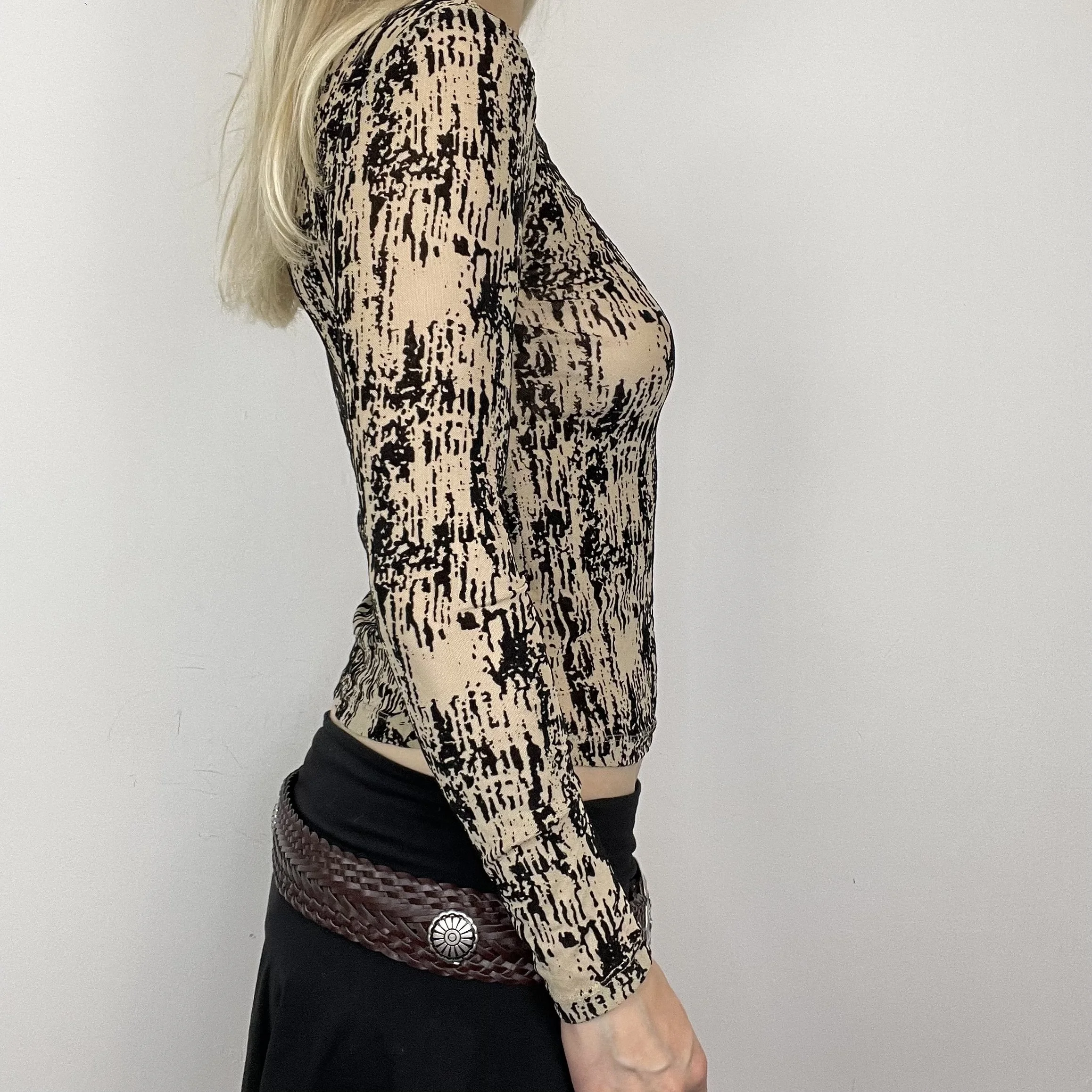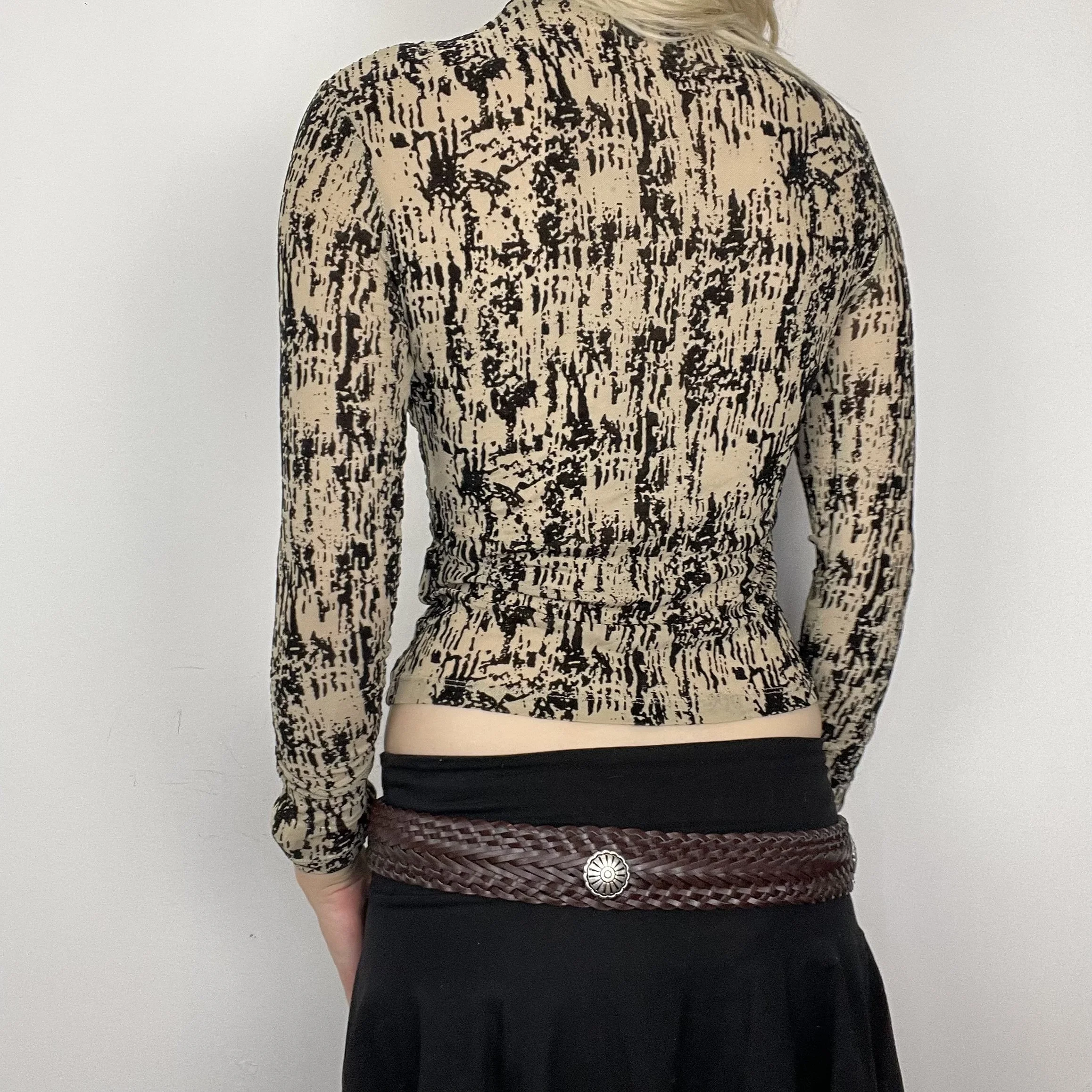 stunning y2k vintage grey pink purple long sleeve mesh sheer leaf fairy print graphic pattern top blouse