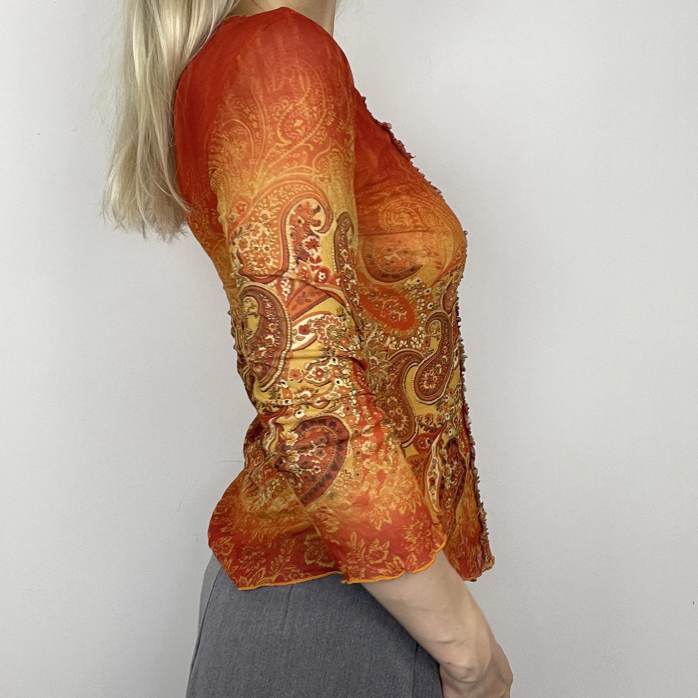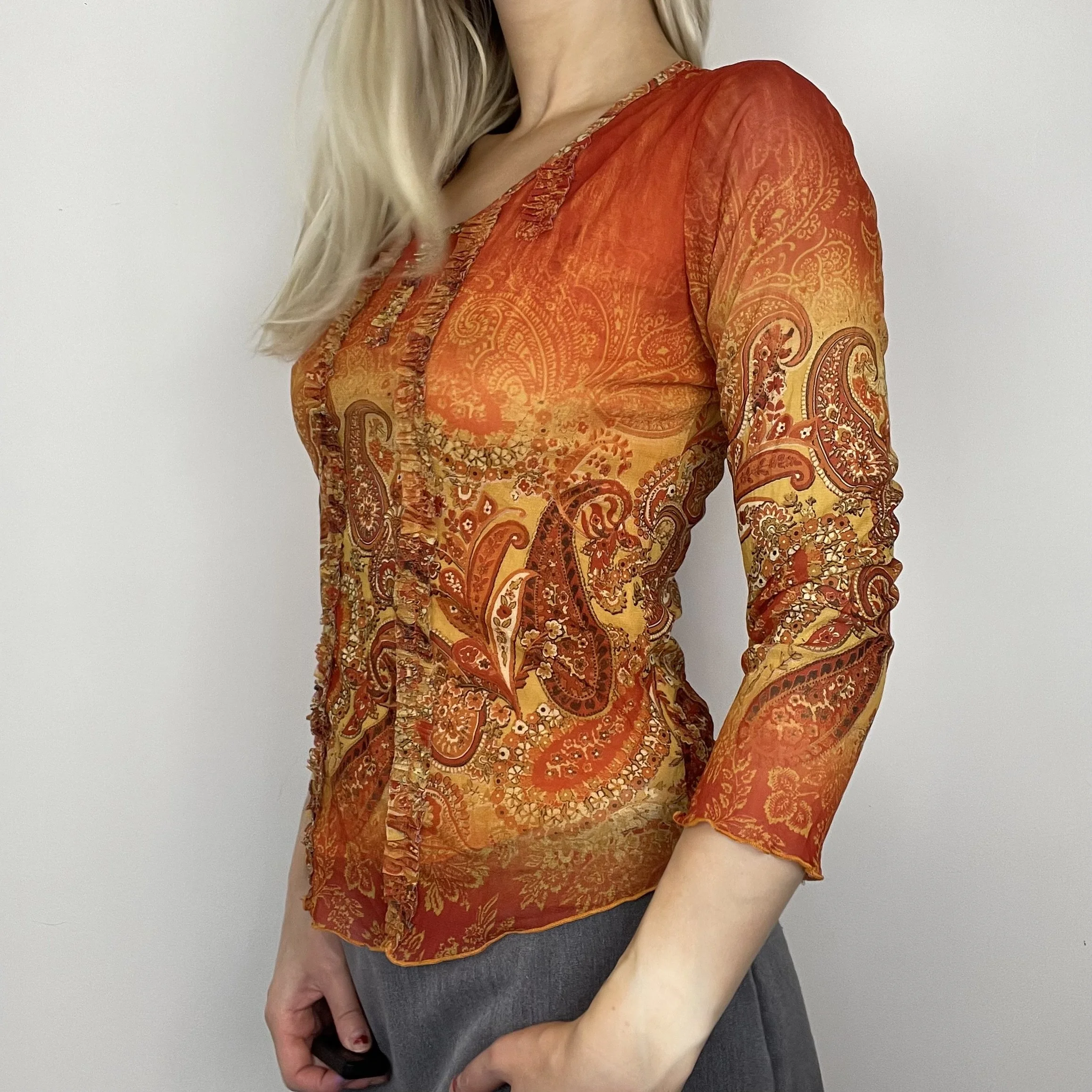 stunning y2k vintage red beaded peplum sheer overlay glamorous embellished cinched sparkly rhinestone V-neck flattering sleeveless Cami top blouse